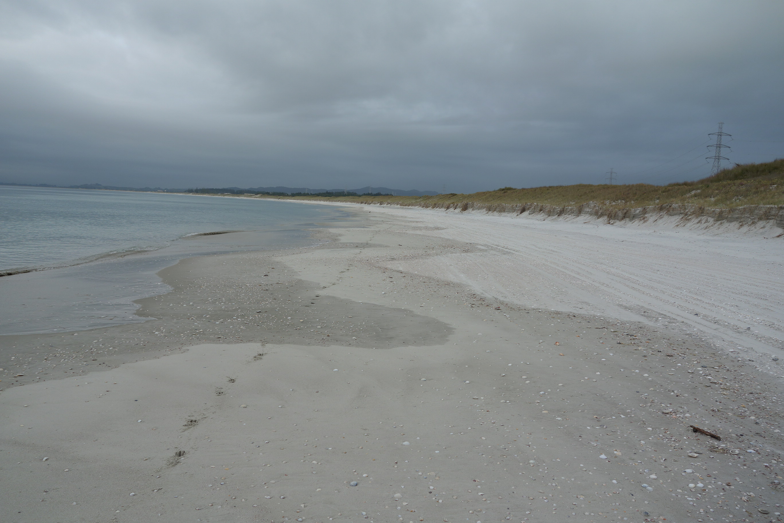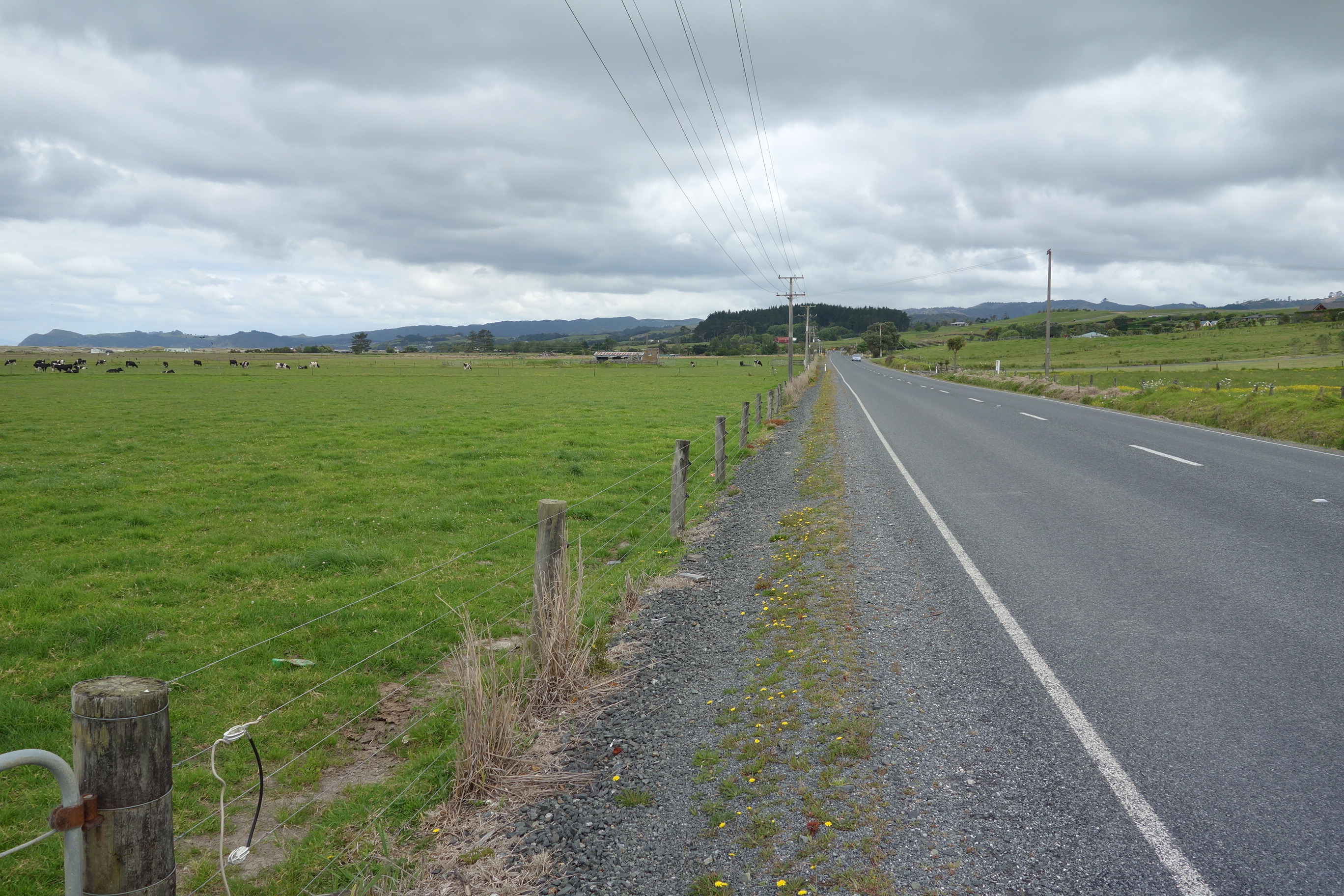 Before reaching the Ruakaka estuary I took the road walk option around it because of the high tide making wading a poor option. It turned into a good choice because there was a small cafe across from Bream Bay College where I stopped for a good flat-white and a sweet roll. Much better than my original breakfast of a granola bar and a drink of water.