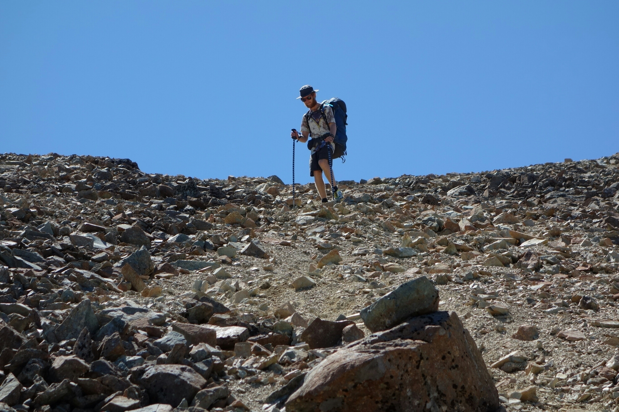 Then it was toward Mount Rintoul down rocky paths and then across scree fields. Here we met a family of goats that were much better at walking the scree slopes than we were.