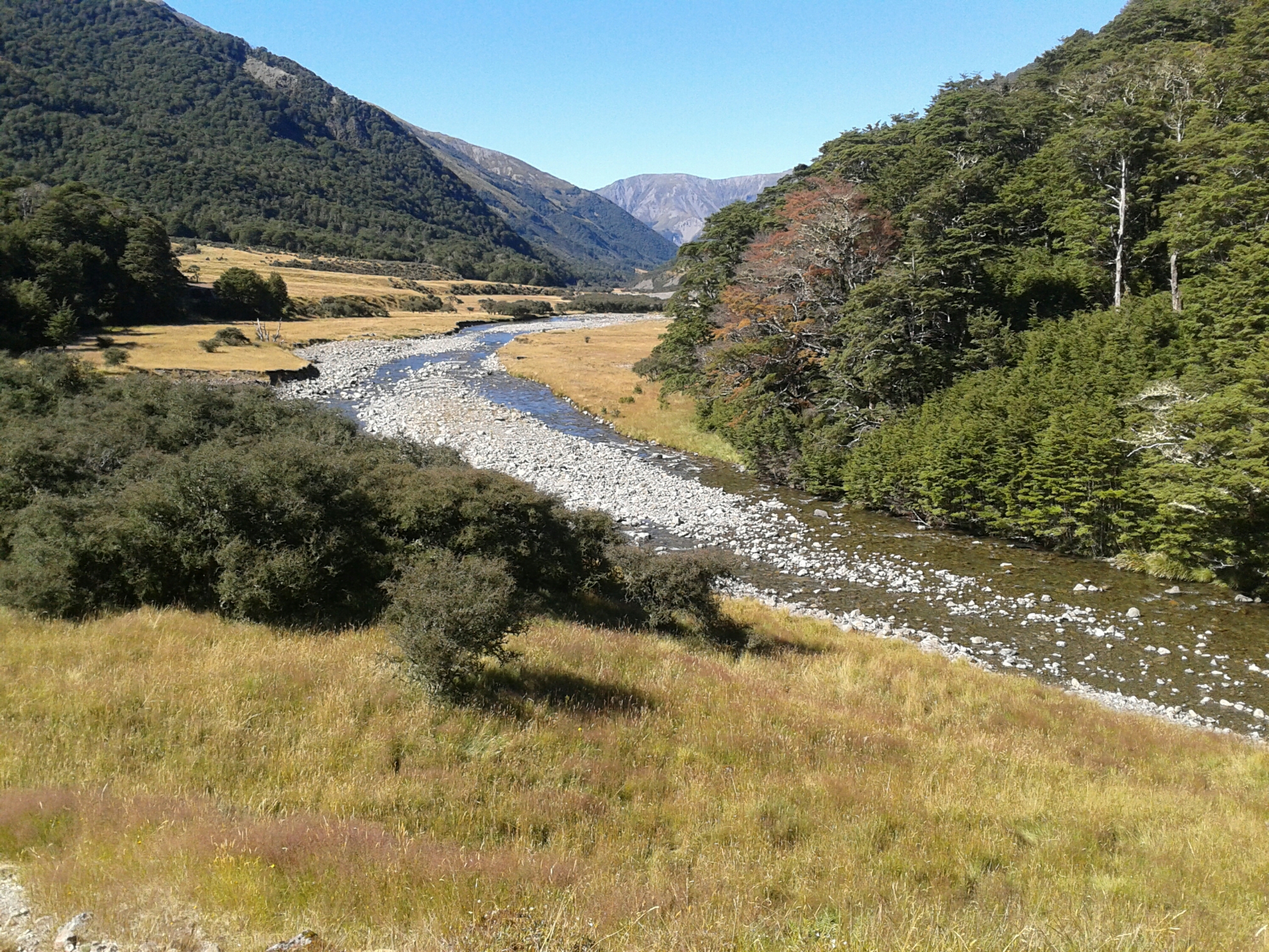 It was nice walking through river valleys all day. Throughout the morning I walked off and on with the Kiwis and Sharon (from Hawaii). I reached Boyle Flat Hut for lunch where I was joined by Sharon. Colin & Graeme continued on without stopping for lunch, with a deadline of meeting Colin’s wife at Boyle Village.