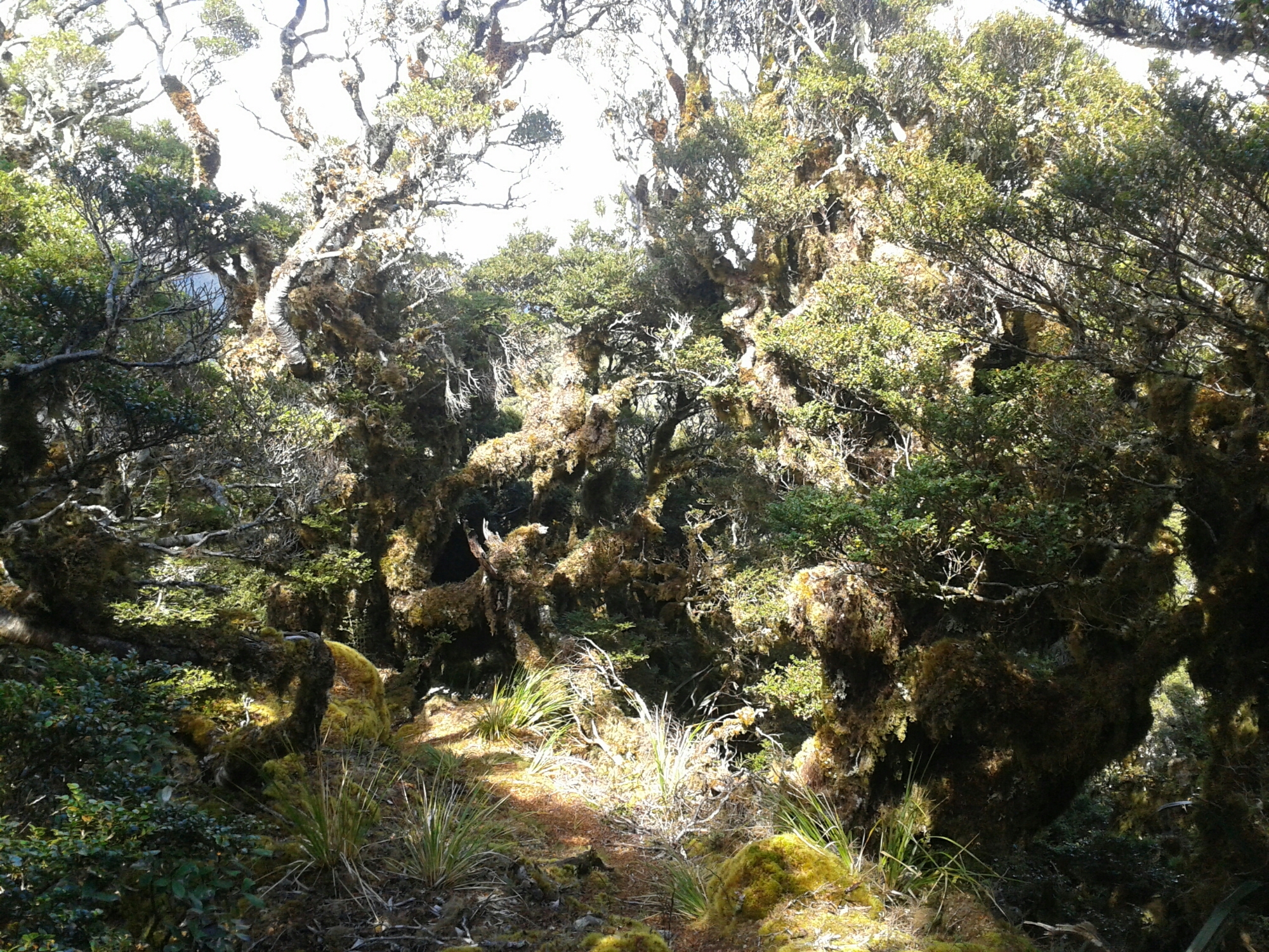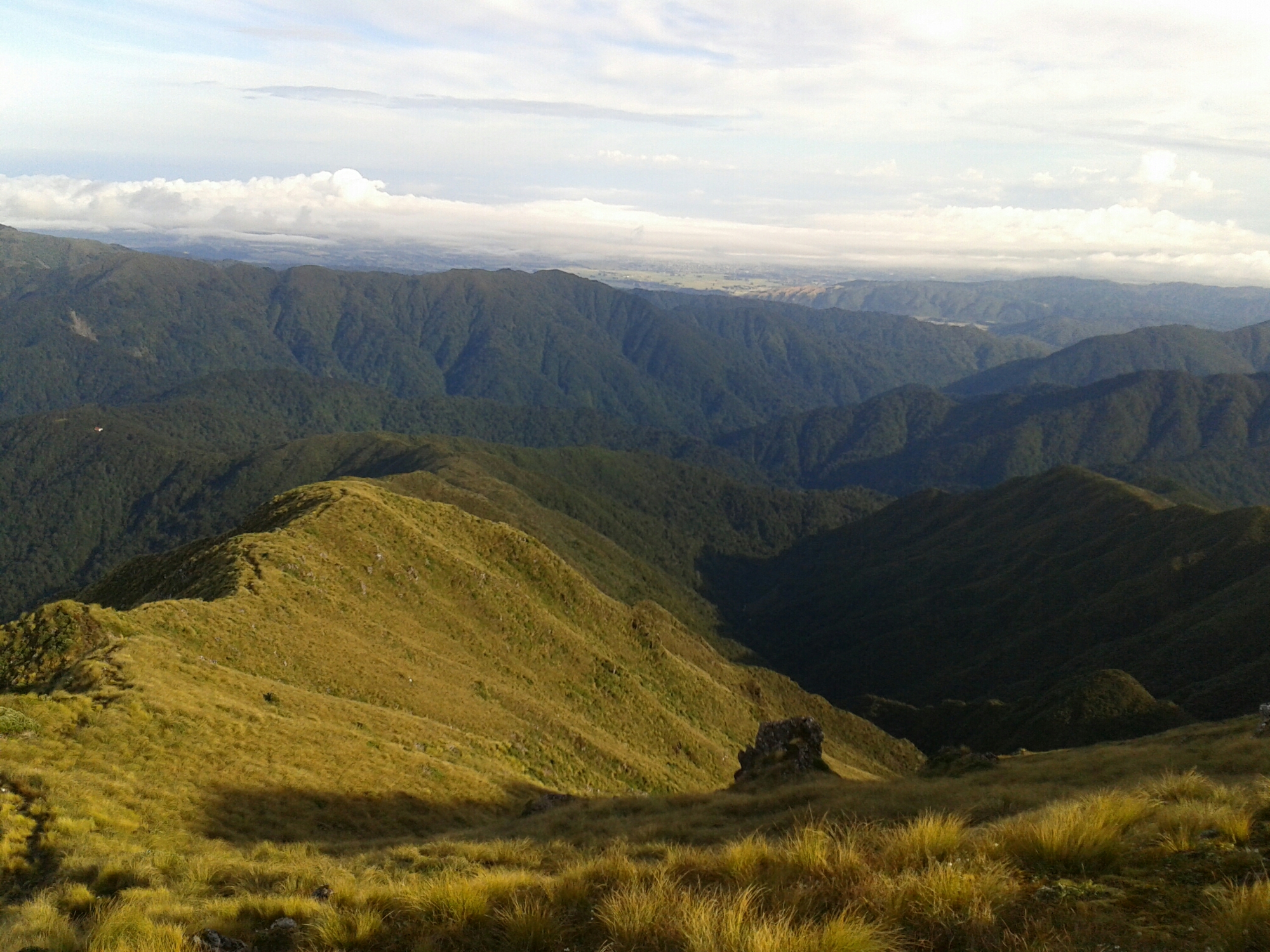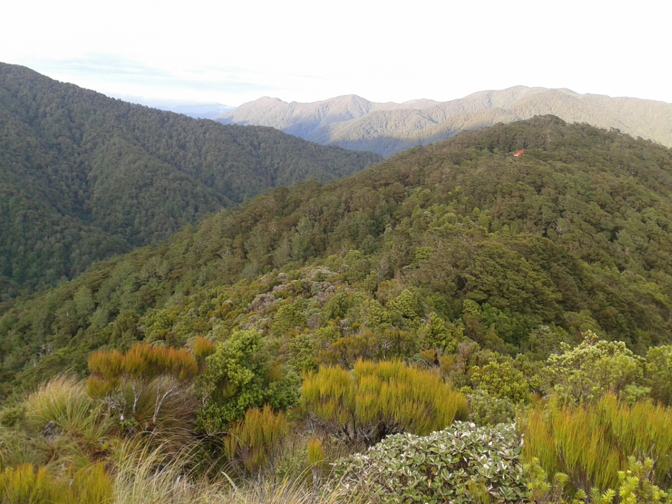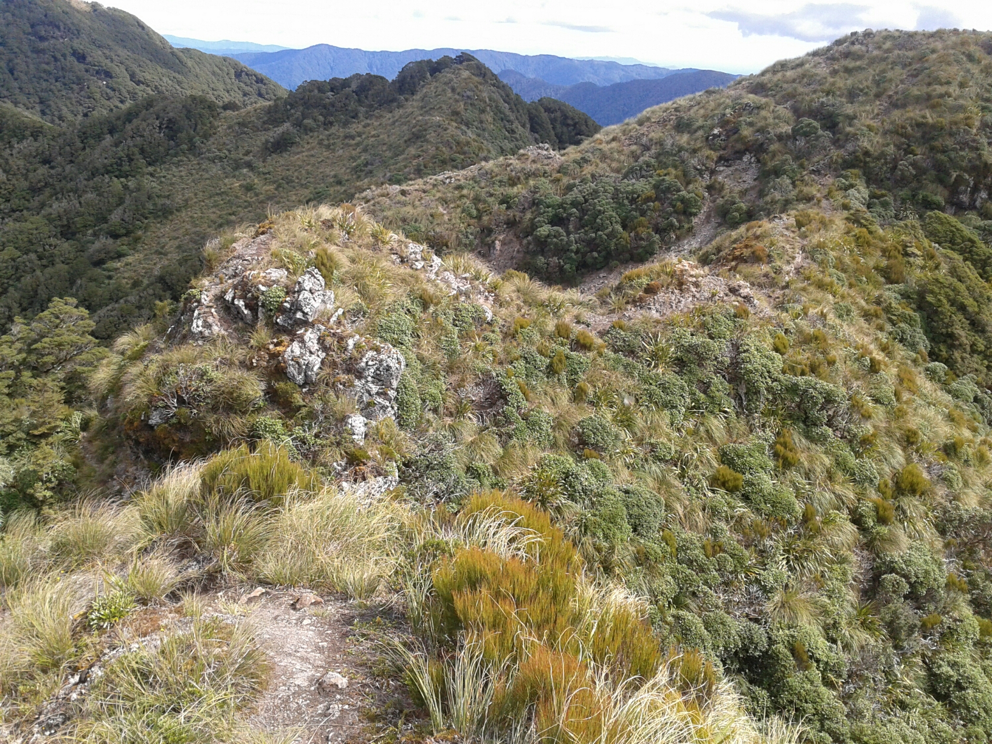 The weather was perfect for most of today with clear skies and cool temperatures. The track followed the ridge line all day and because of the curve of the ridge I was able to look back at Te Matawai Hut for most of the morning. It gave me a feeling that I wasn’t making progress every time I looked back and saw my starting point.